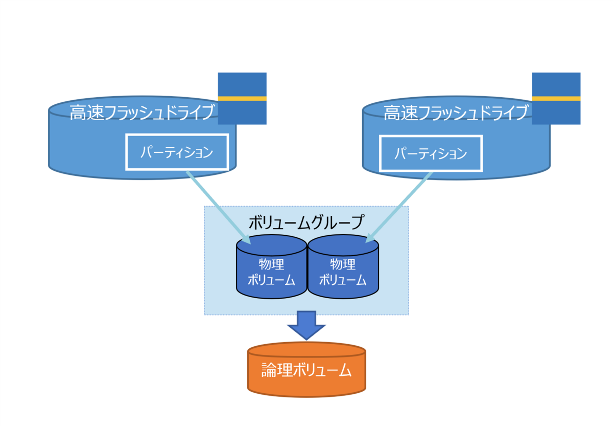 LVMは「logical volume manager」の略で、複数のハードディスクやパーティションを論理的に1つのボリュームとして扱うことができるディスク管理機能となります。