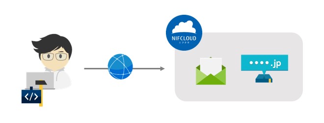 SMTPリレー/Web APIを用いてニフクラ上のシステムと容易に連携できるのはもちろん、効率的な配送制御が可能です。