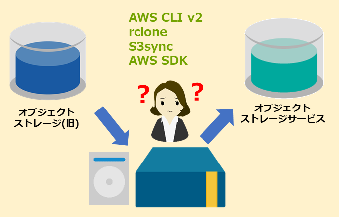 オブジェクトストレージ(旧)からオブジェクトストレージサービスへデータを移行する方法は複数ございます。