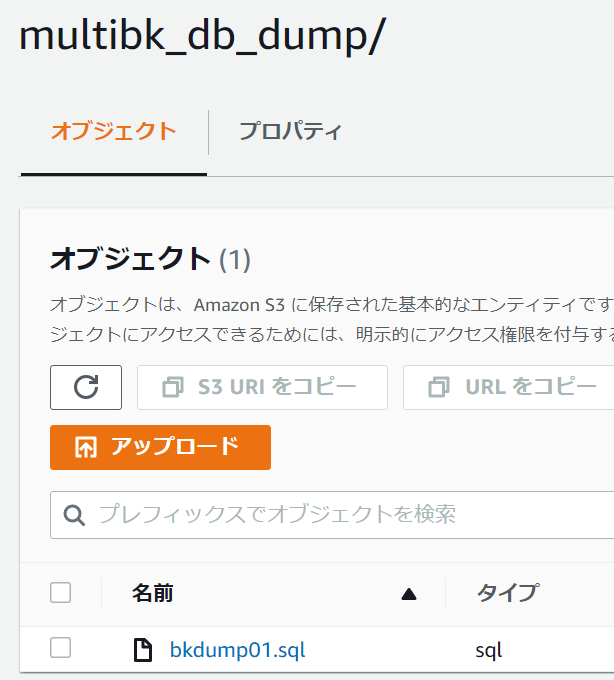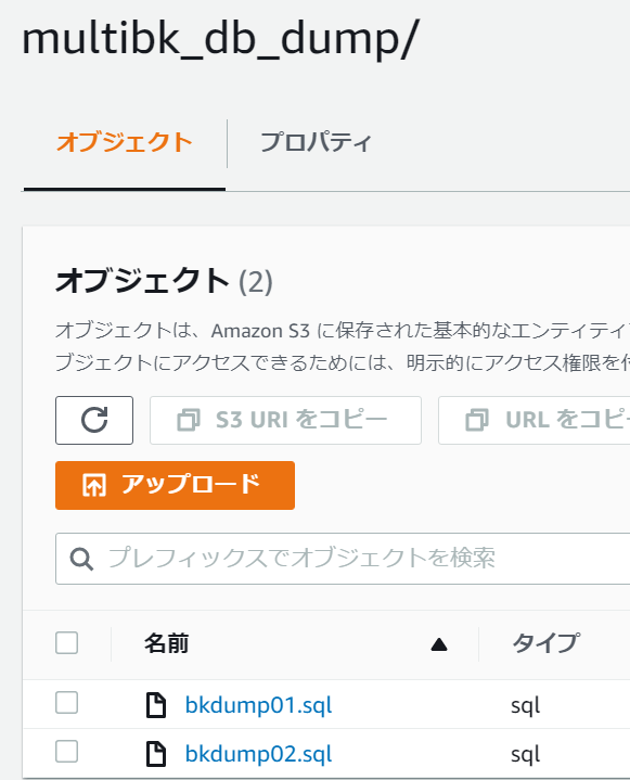 ニフクラオブジェクトストレージサービスとAmazon S3にダンプファイルがアップロードされました。