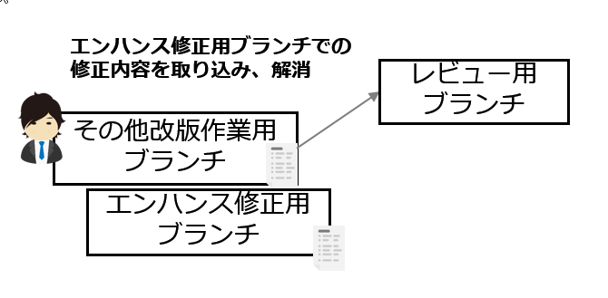 GitLabで運用することにより、エンハンス修正と並行してその他の改版作業を行うことが容易となりました。(問題B-⑥の改善)