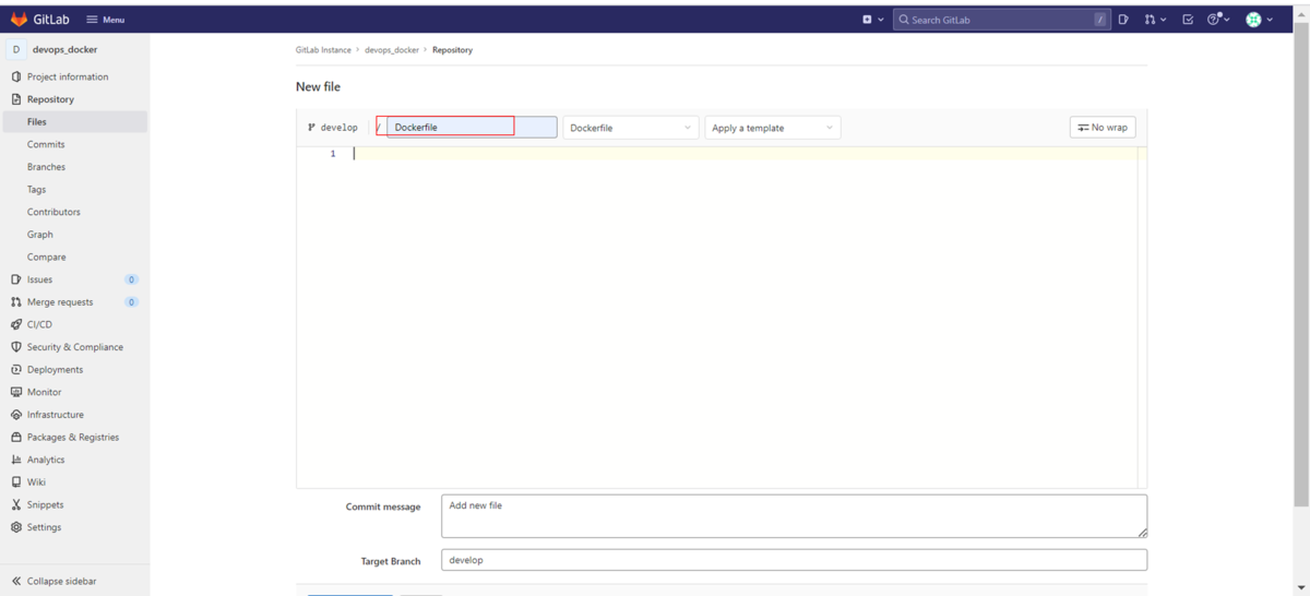 CI/CDで必要なDockerfileをgitリポジトリ内に作成します。