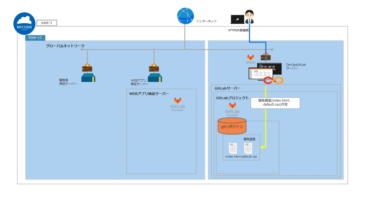 ニフクラDevOps with GitLabではGitLabRunnerを使って容易にCI/CD環境を構築することができます。