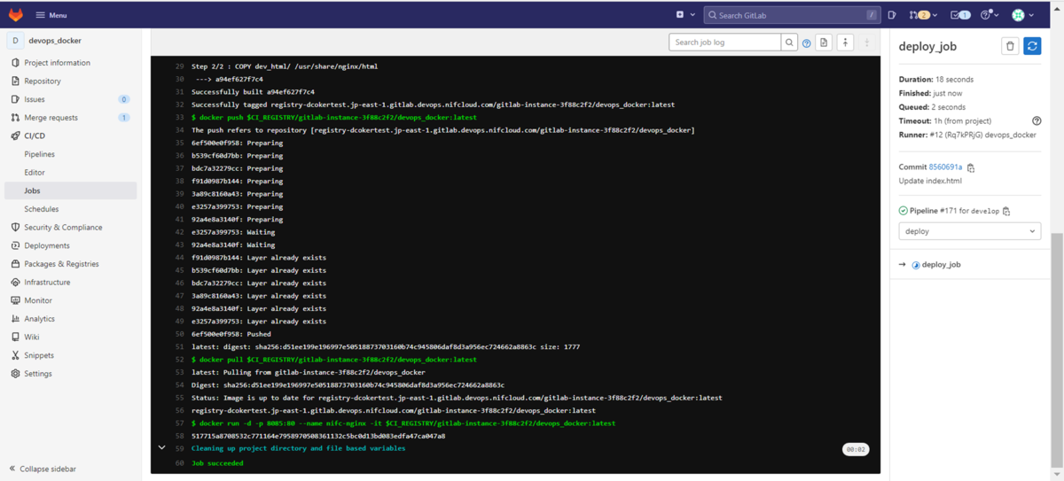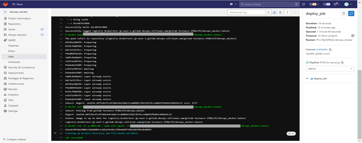 検証1-2 GitLabRunner CI/CDパイプライン実行_コンテナレジストリ更新
