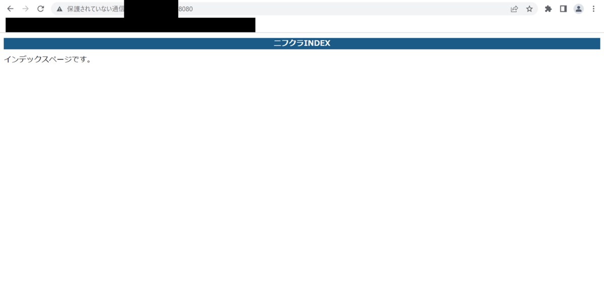 WEBアプリ検証サーバーにsshでアクセスしてdocker psコマンドを実行すると以下のようにデプロイされたDockerコンテナを確認することができます。 今回検証のコンテナイメージはNAME:「nifc-nginx」で8085ポートで起動しています。 ※前回ブログで起動したコンテナイメージも8080ポートで起動していることが確認できます。