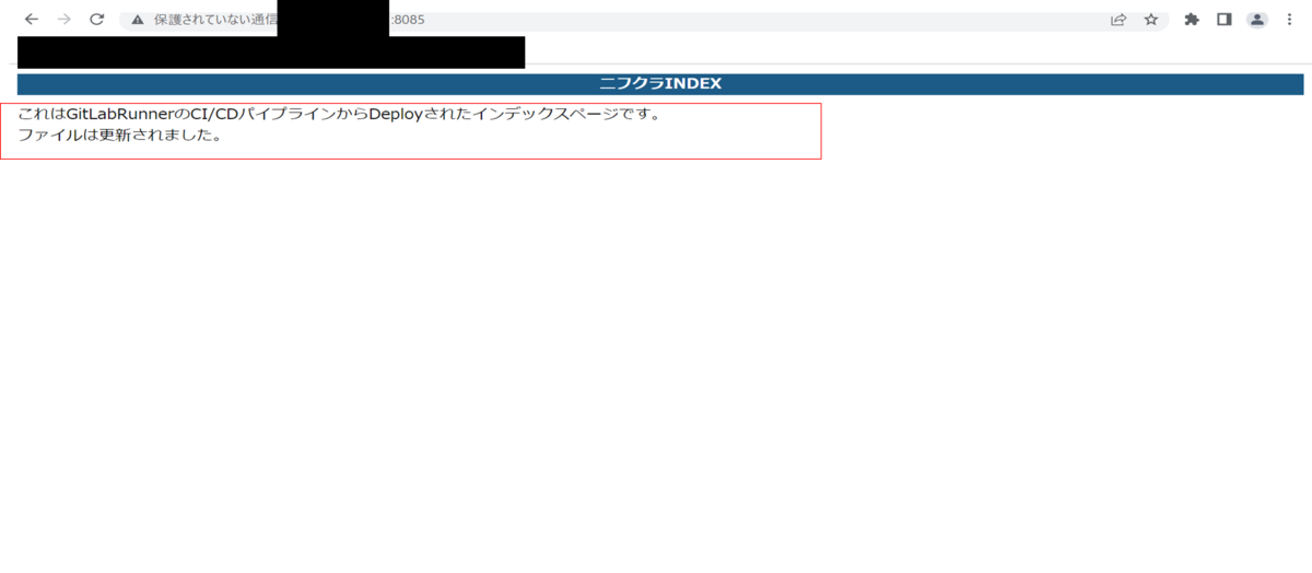 これはGitLabRunnerのCI/CDパイプラインからDeployされたインデックスページです。