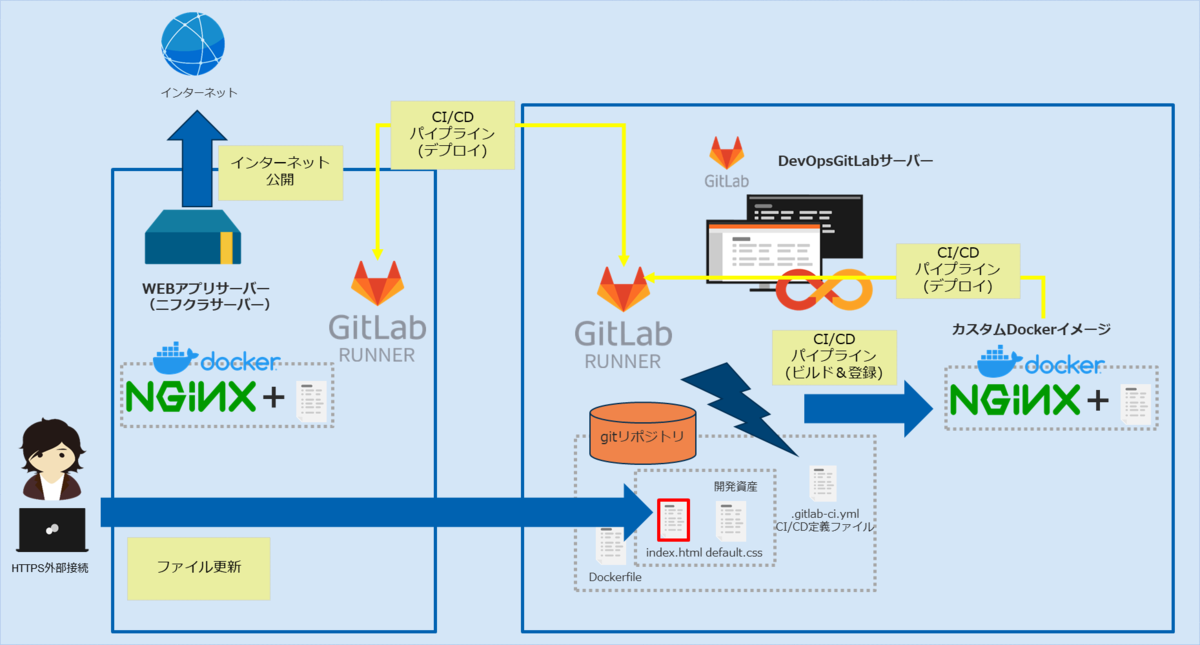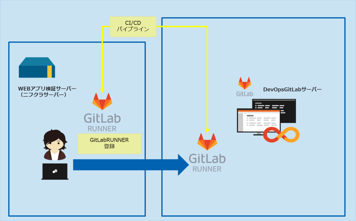 今回はDevOps with GitLabサーバーでGitLabRunner(他社サイトへのリンクです)を使ったCI/CDパイプラインでの自動化作業について紹介します。