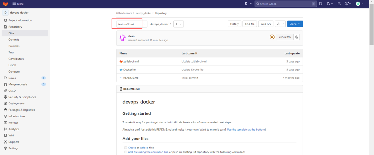 作成したdevelopリポジトリに移動し.gitlab-ci.ymlをクリックして内容を編集します。