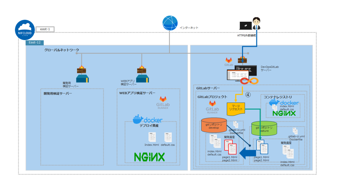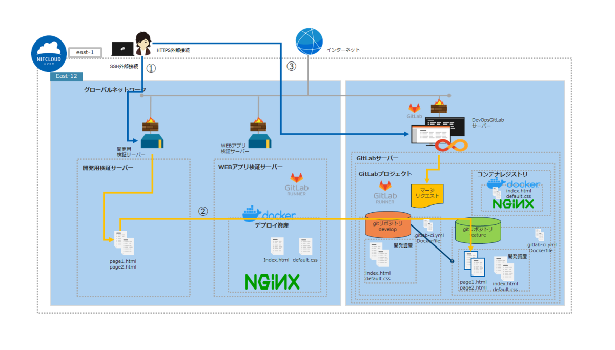 ニフクラDevOps with GitLabを導入して本ブログの手順を参考にすれば1~3日でDevOps開発の環境構築~基本的な作業の流れが把握できます。