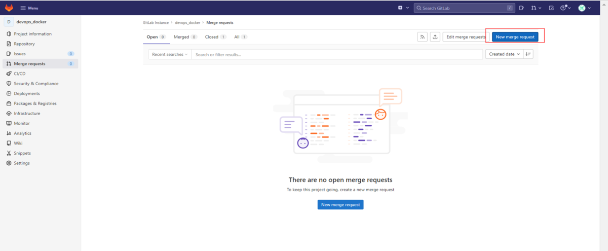 「New merge request」をクリックします。