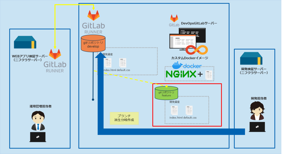 今回はGitLabのマージリクエスト機能(他社サイトへのリンクです)を使って、実際の開発現場を想定したエンハンス開発作業を実施して、実践的なDevOps開発を紹介します。