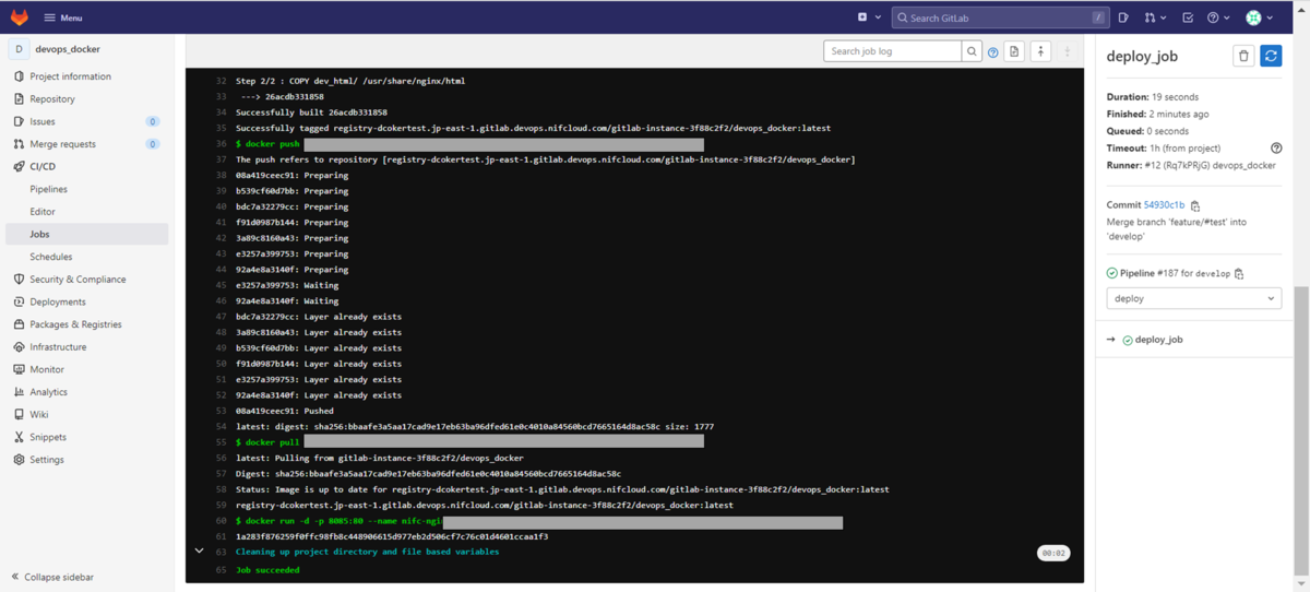 #docker pushしてコンテナレジストリのDockerイメージ(タグ名:$CI_REGISTRY/xxxxxxx/devops_docker)を更新する。