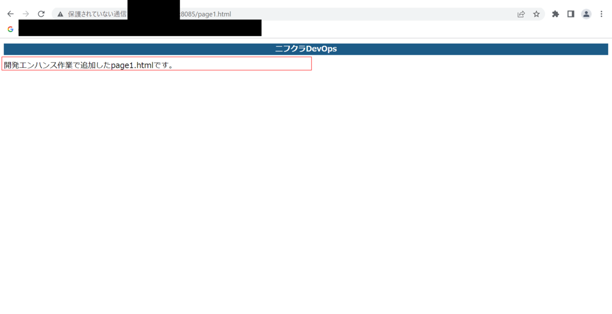 ブラウザでWEBアプリ検証サーバーのエンハンス作業で追加したpage1.htmlのURLにアクセスします。