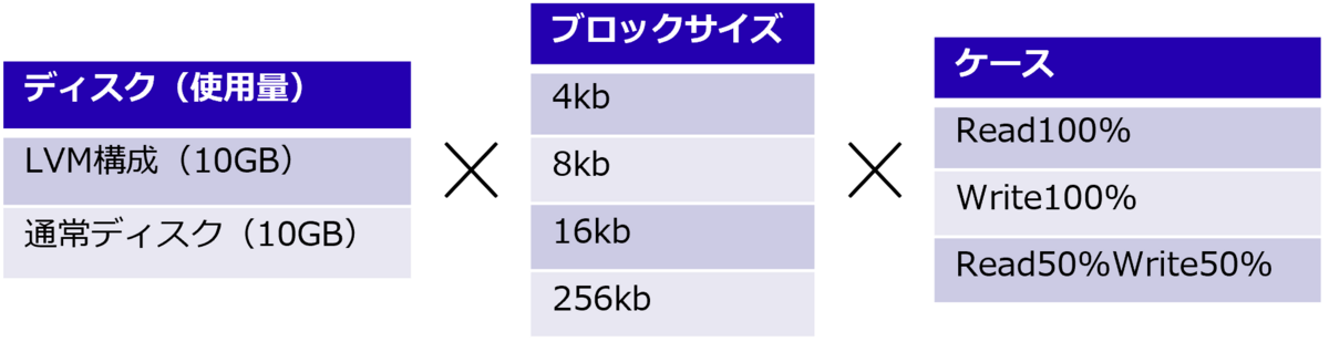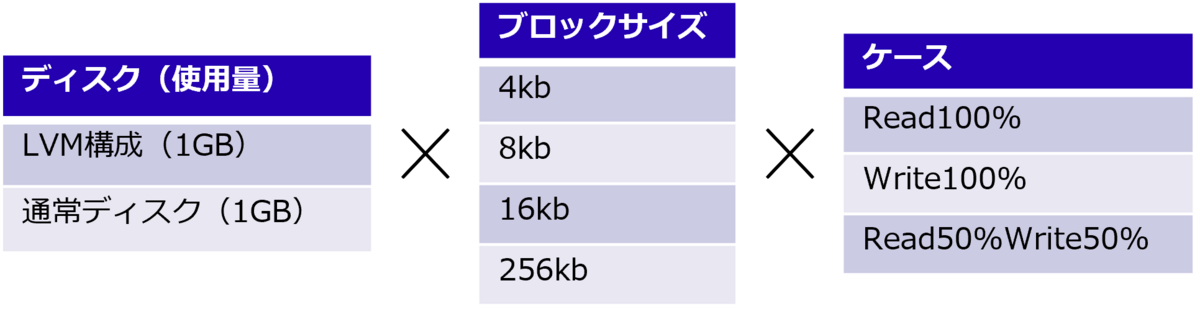 1GBでの検証と同様に、以下の組み合わせを各複数回実施しその平均値を取得し、結果を確認します。