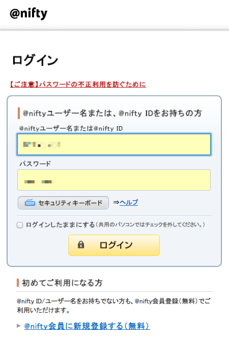 このサービスでは@niftyのアカウントが必要なりますので、お持ちでない場合は作成して下さい。