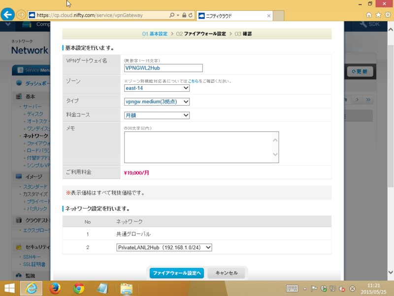 前回の IPsec VPN(L3 VPN) では裏技っぽい感じでニフティクラウドを Hub とするような構成をつくってみましたが、 L2TPv3/IPsec VPN(L2 VPN) ではふつうに(とくに工夫とかする必要なく) 2 カ所のオンプレをつなぐだけです。