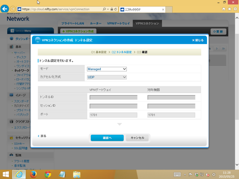 トンネル設定はモードに Managed を選択し “確認へ” ボタンを押します。