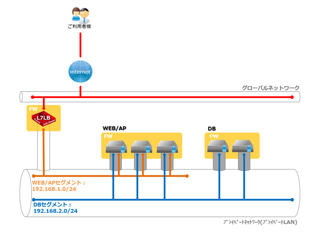 ・WEB/APサーバーからDBサーバーへは「192.168.2.0/24」のネットワーク帯を利用して通信を行う